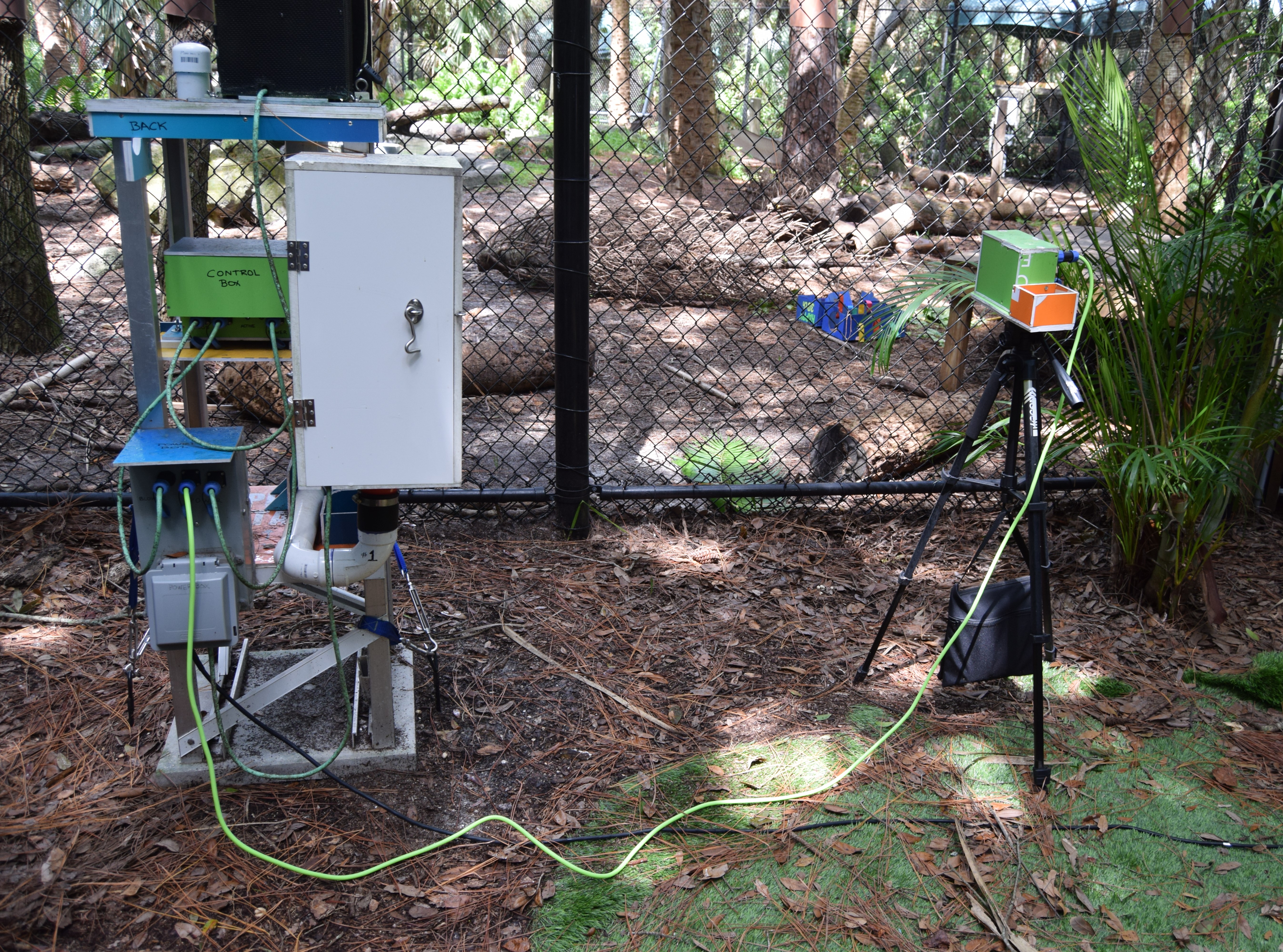 We delivered a weather resistant power cable to the Brevard Zoo so the Black Bear enrichment device can continue to be left outside in most weather conditions. Don worked on the weatherproofing for the connections on the cord earlier in the week.
