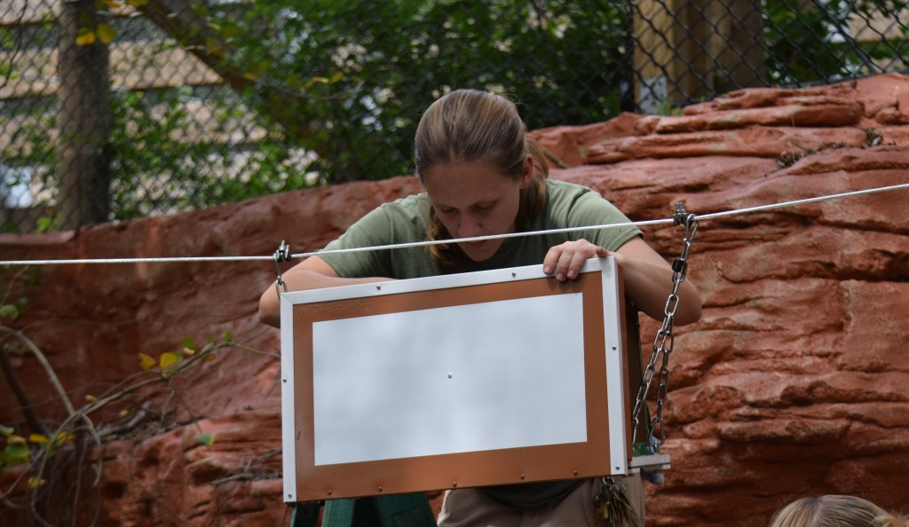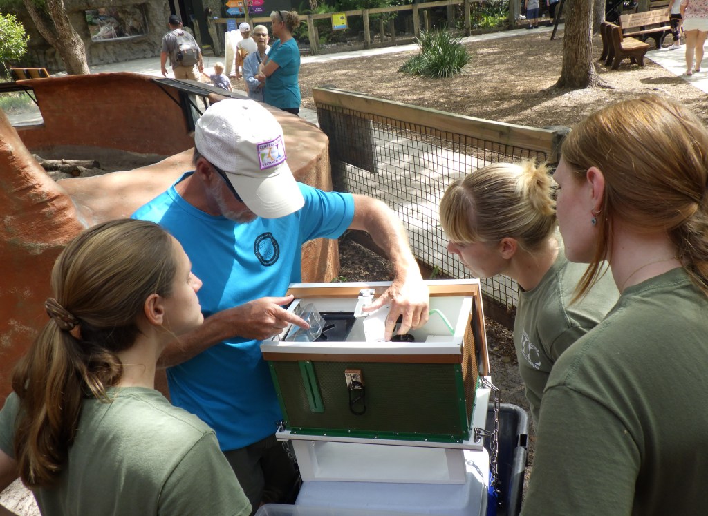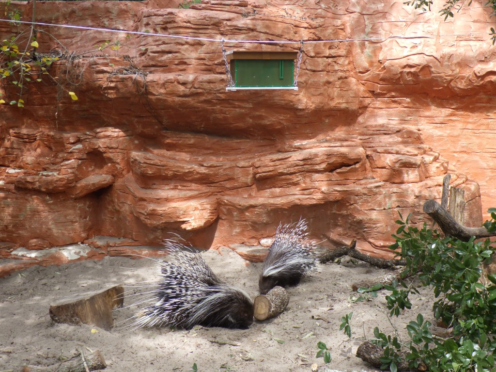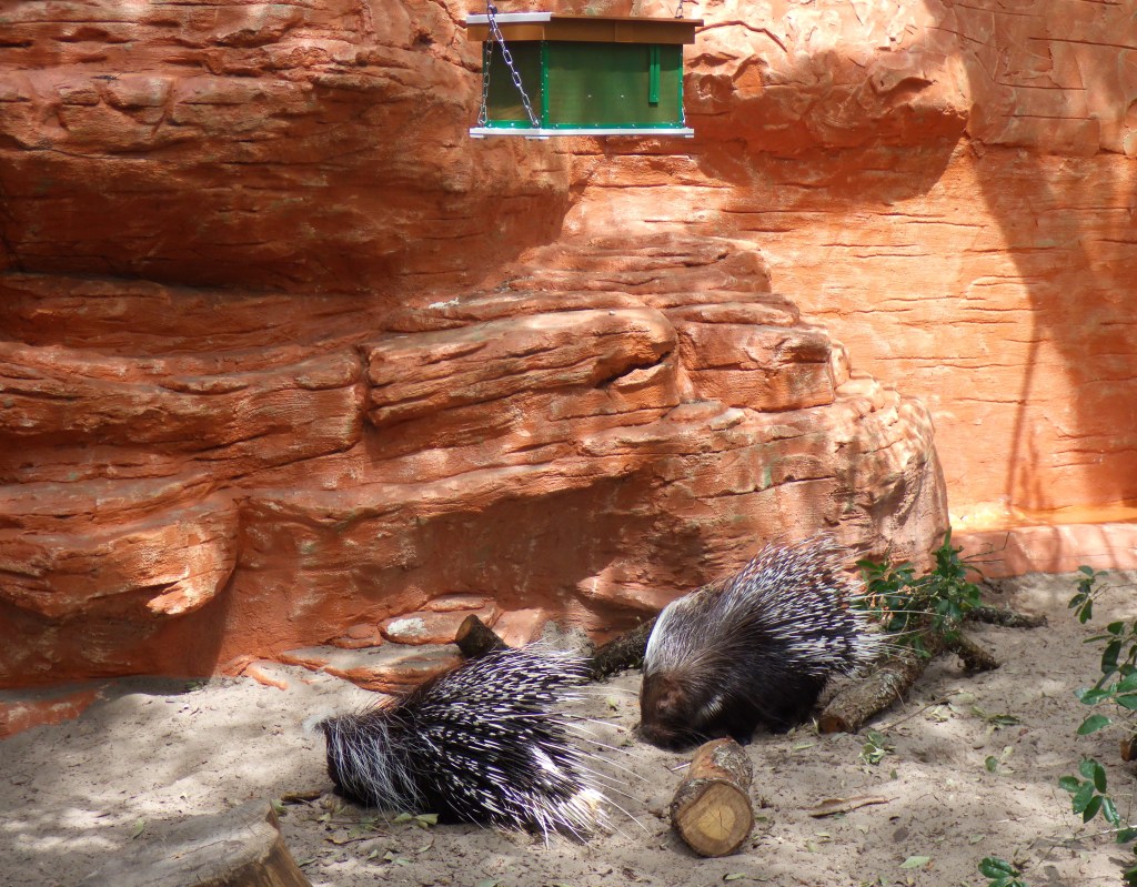 Exciting news! We delivered the environmental enrichment device (EED) for Central Florida Zoo’s African Cape Porcupines on Earth Day. The enrichment will be set up as nighttime feeding for the adorable nocturnal porcupines, Pluto and Pancake. The Zoo Keepers did mention that they may set up a feeding session or two during daytime hours so visitors can see the enrichment in action. Pancake and Pluto were released into their habitat after installation of their new EED. The food was dispensed onto a stump to create sound and they headed over to investigate and forage.