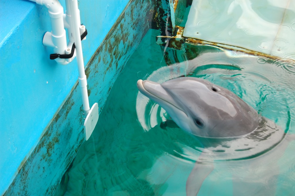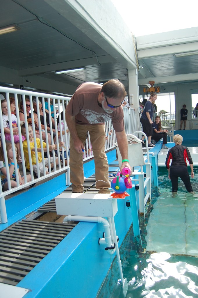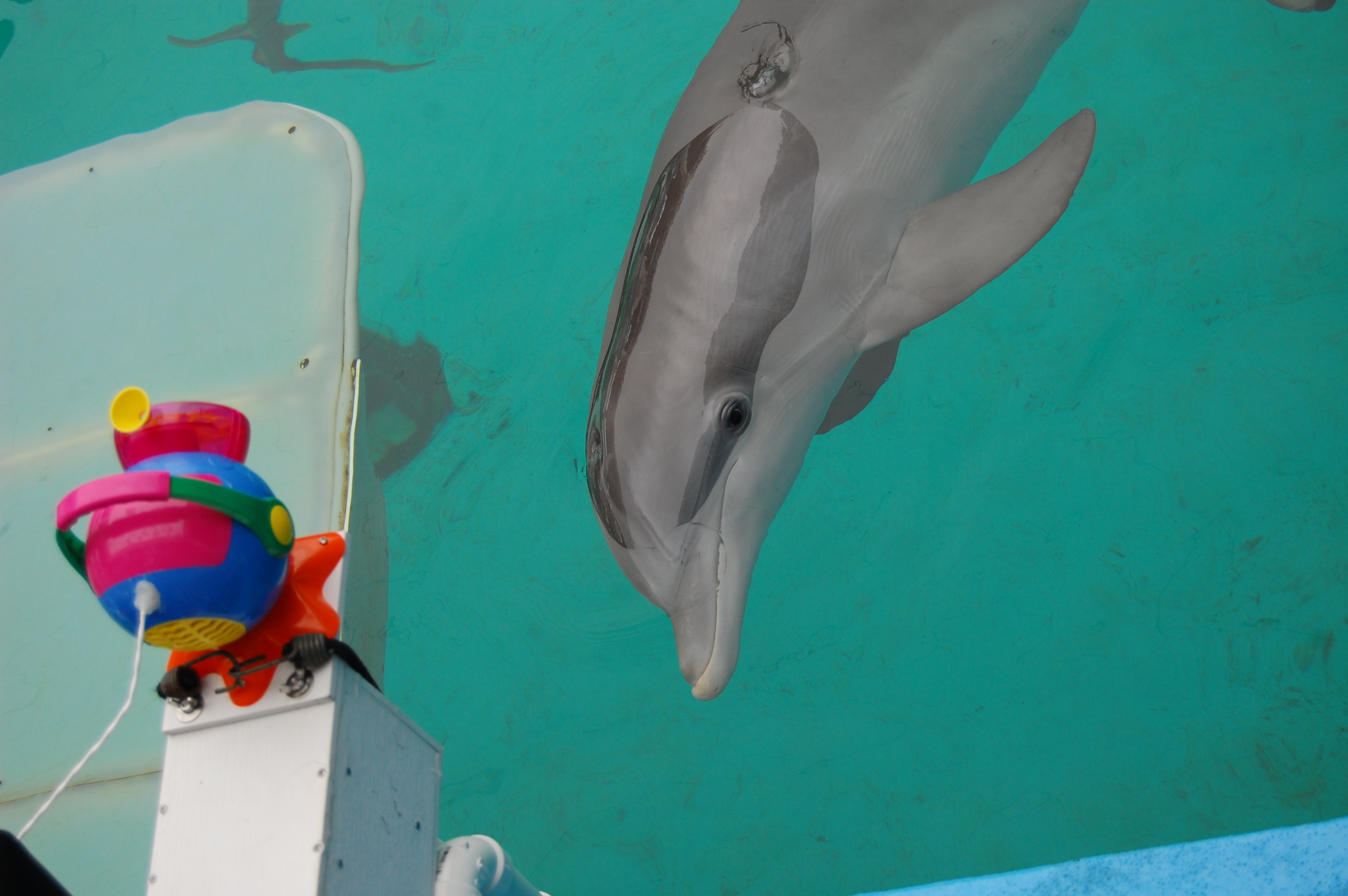 Coming to Clearwater: While watching Saturday morning animal shows on TV, a program aired featuring a baby dolphin calf named Hope. The aquarium, Clearwater Marine Aquarium (CMA), was able to save and hand-raise the very young orphaned dolphin calf. Because of the Langs’ experience with dolphins, it was obvious that this was an amazing feat and prompted a trip to meet this miracle baby dolphin. At Clearwater Marine Aquarium (Home of Winter, another rescued dolphin), Hope was found living in a large round pool with an underwater platform. She had plenty of floating toys but preferred to blow bubbles under the platform and chase them to the surface. Watching this behavior prompted a conversation with an intern about the intelligence and creativity of dolphins. Naturally, the conversation got around to a description of the EEDs created for DRC. The intern said, “Don’t you move! I’m going to get one of the trainers to come out and talk to you.”