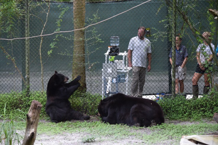 Zoo Tampa’s resident black bears received an EED that has a button that the bears can push against their habitat fence. This EED can dispense a variety of unsalted nuts and seeds.