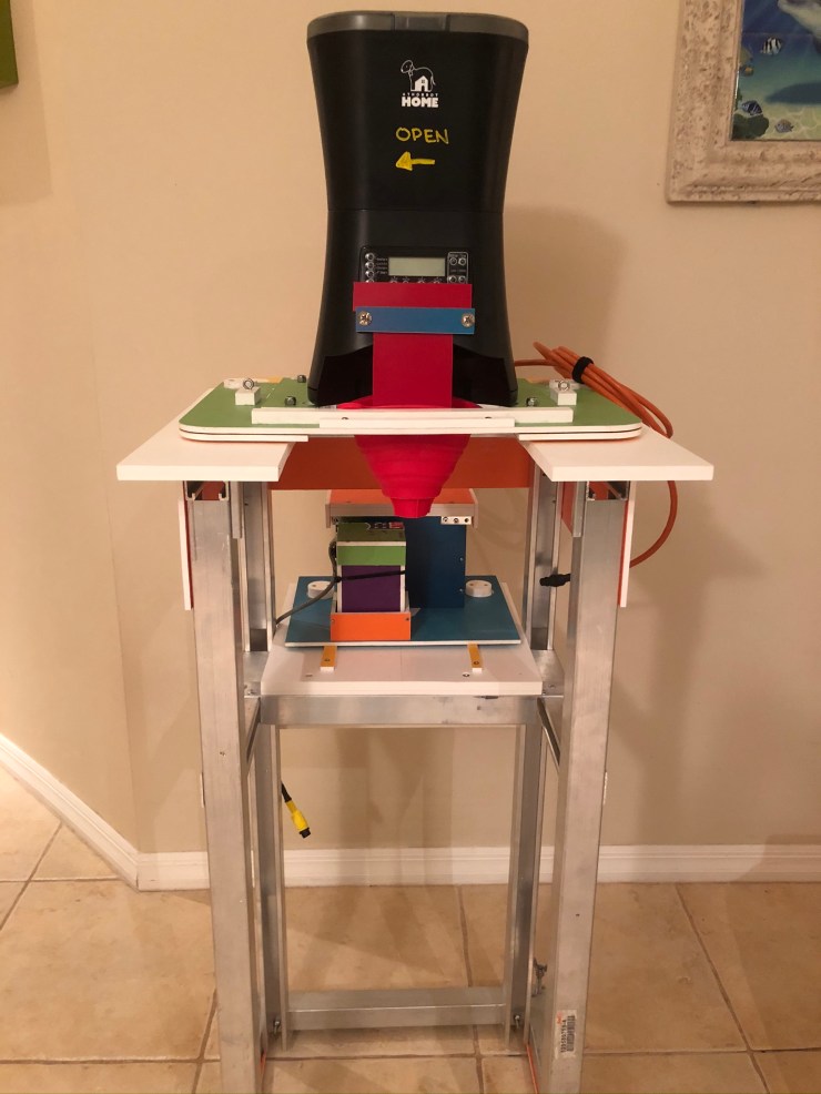 Every EED is custom-made for each facility. The process starts with brainstorming with the animal caregivers and touring the animals’ habitats. That provides the opportunity to learn more about the animals and observe their natural behaviors to get ideas. Once Don has developed a design, he builds the devices in his garage during his spare time on nights and weekends. During the design and development of every EED, safety is a paramount consideration. Don and Cindy test All EEDs prior to delivery. In addition, before any EED is introduced to an animal, the zoo staff approves it for use in the animal’s environment.