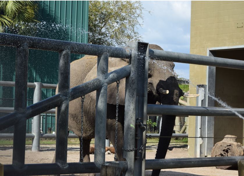 Spring 2019: Here is a short video showing a test of the Elephant Enrichment Device (EED) “Ella Phun” We needed to make sure the water feature and apple dispenser worked before we delivered it to ZooTampa.