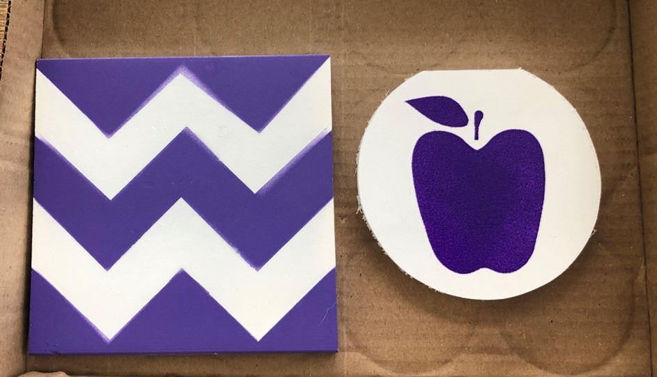 The other remote is motion activated. This gives the elephant the ability to provide its own enrichment. The motion detecting remote can be set up to 200 yards from the dispensing machine, giving the elephants the ability to get their own treats or water spray. There are two different patterned signs that signify either apples or water spray. The elephants can learn which sign/pattern to choose. We chose waves/”W” for water and a round design with an apple. We chose the color purple as a thank you to our logo designer, Kristin.