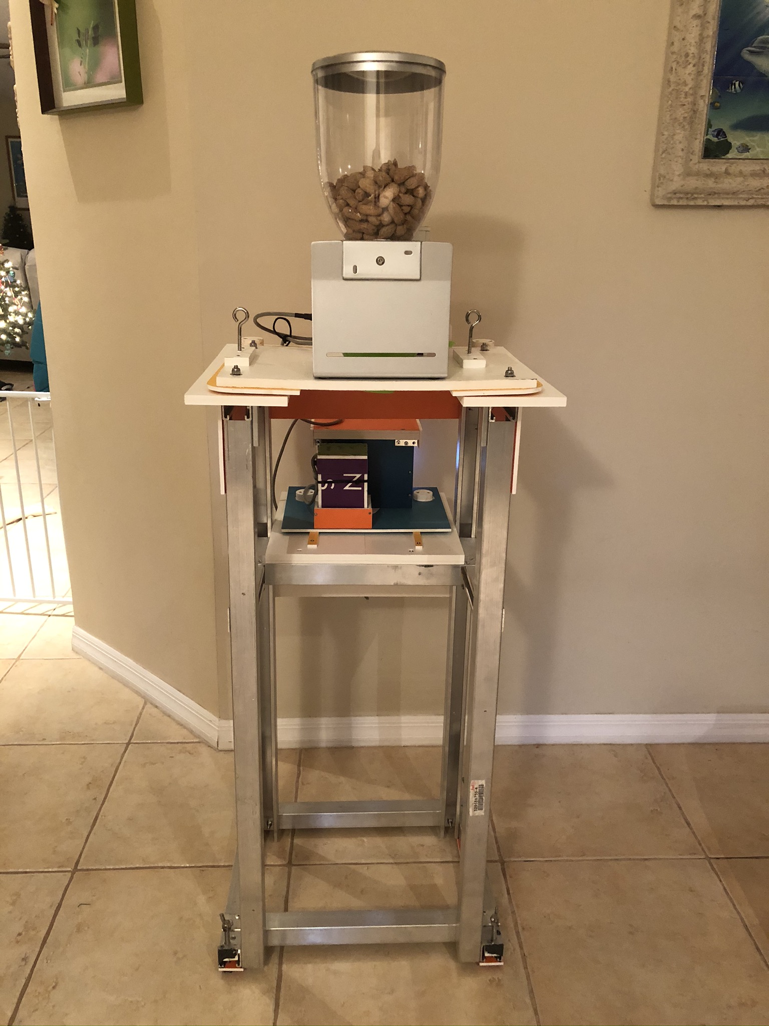 Our most recent environmental enrichment device (EED) is an upgrade to the seed/nut dispensers for the Florida black bears and primates at ZooTampa. We also built batteries/chargers that can be used with all the devices currently in use. We met zoo staff in the parking lot to be safe due to Covid.