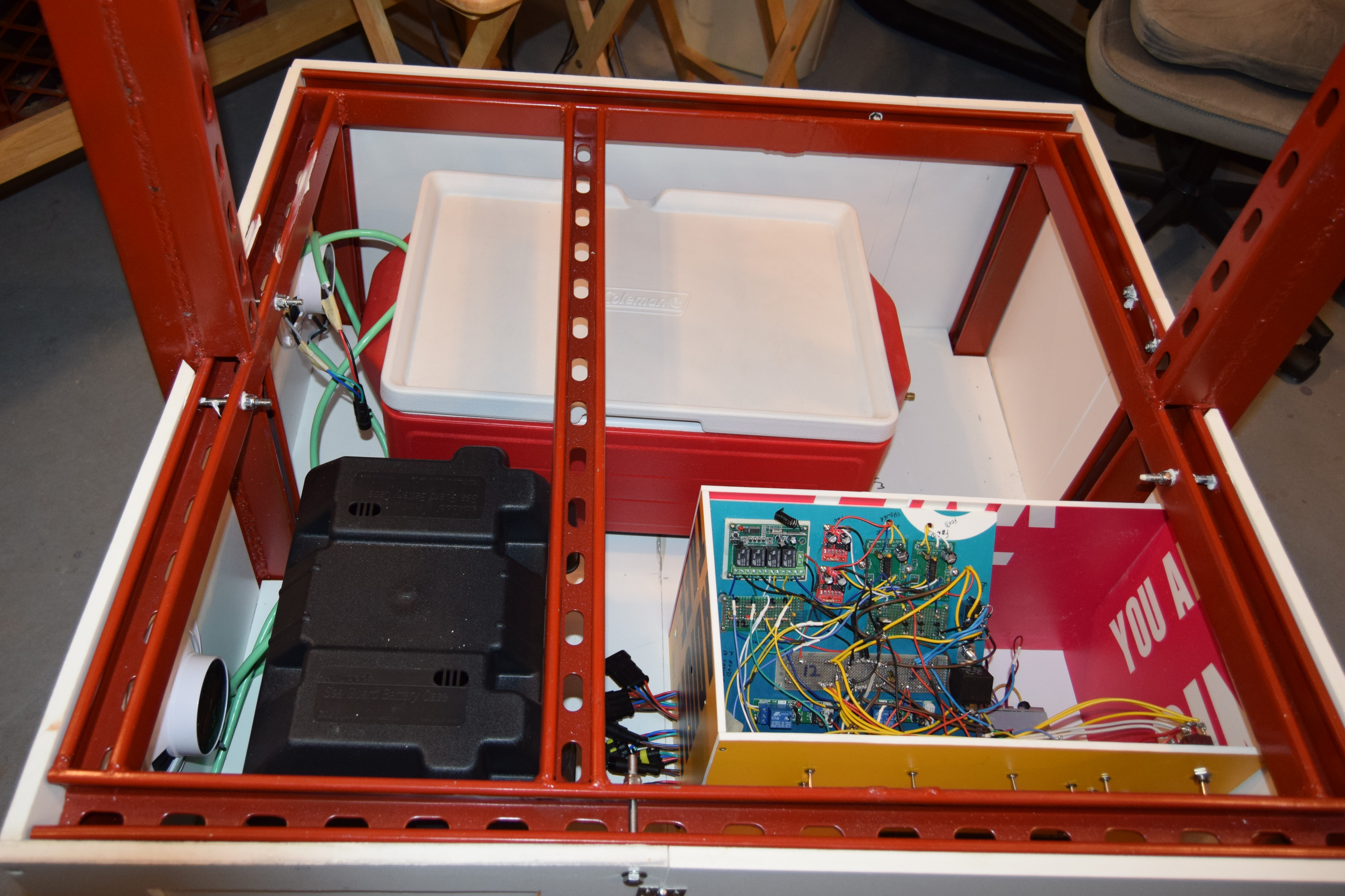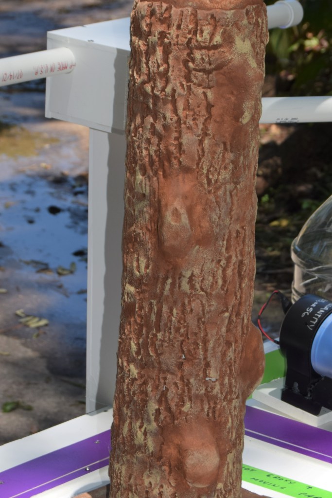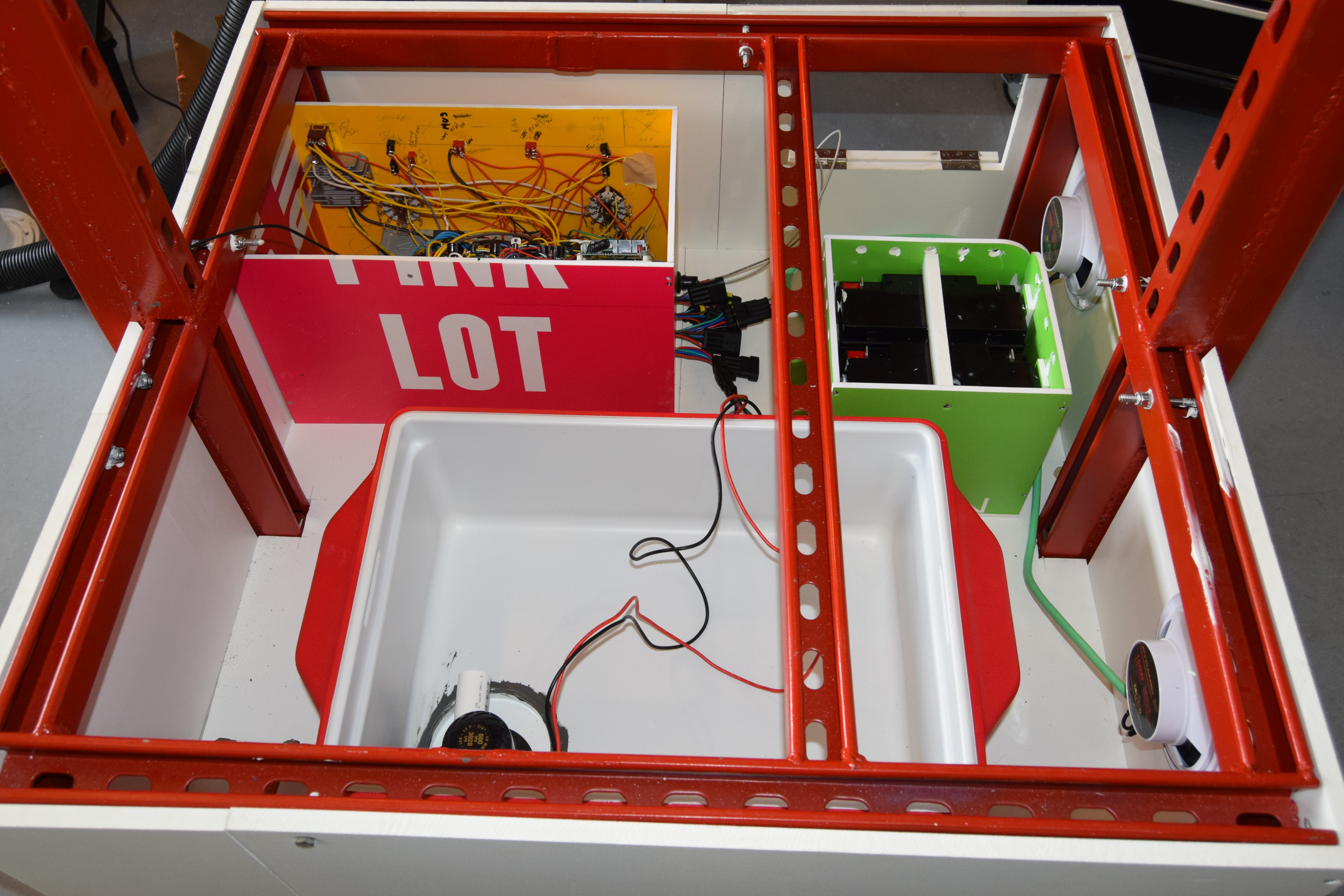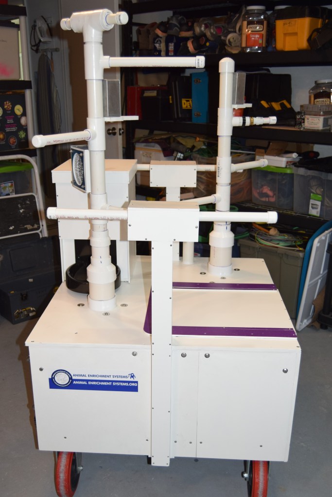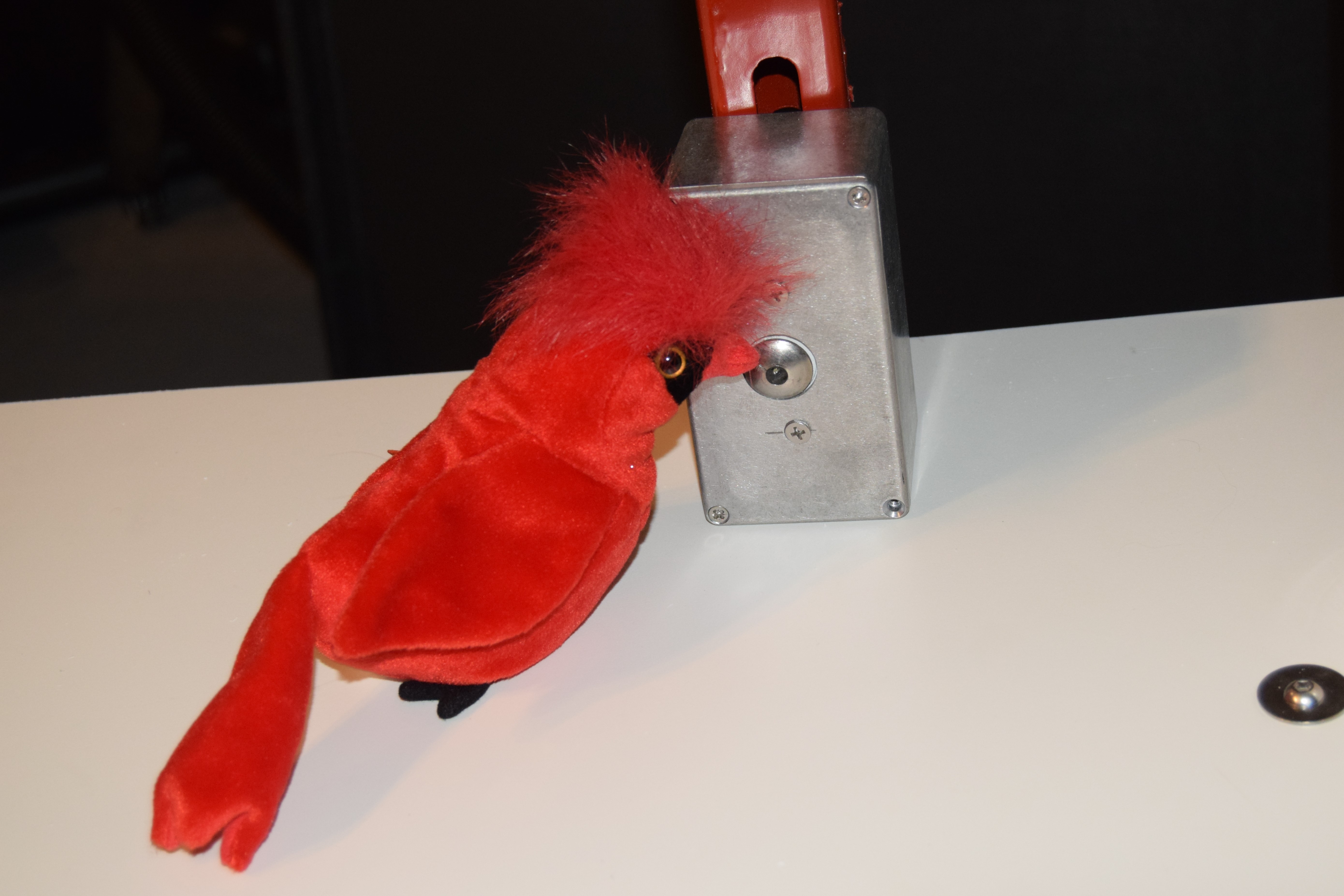 Sound test today. The speakers are in, and the bird chirp sounds work. There is still more work to be done. We are happy that the all the intricate wiring in the control panel “brains” works! We are designing/building this Environmental enrichment device (EED) for ZooTampa