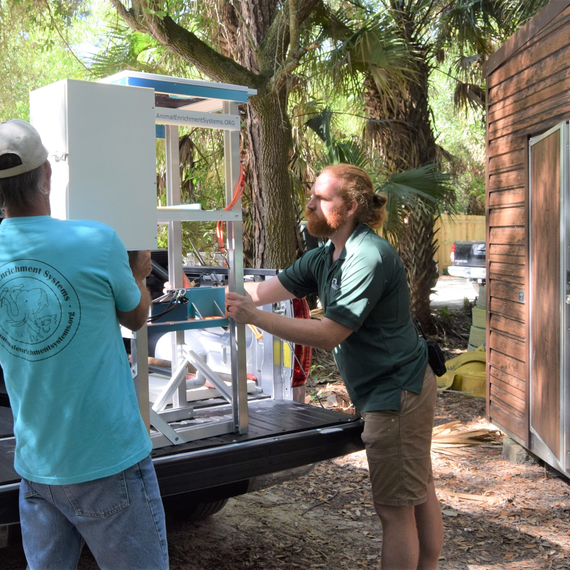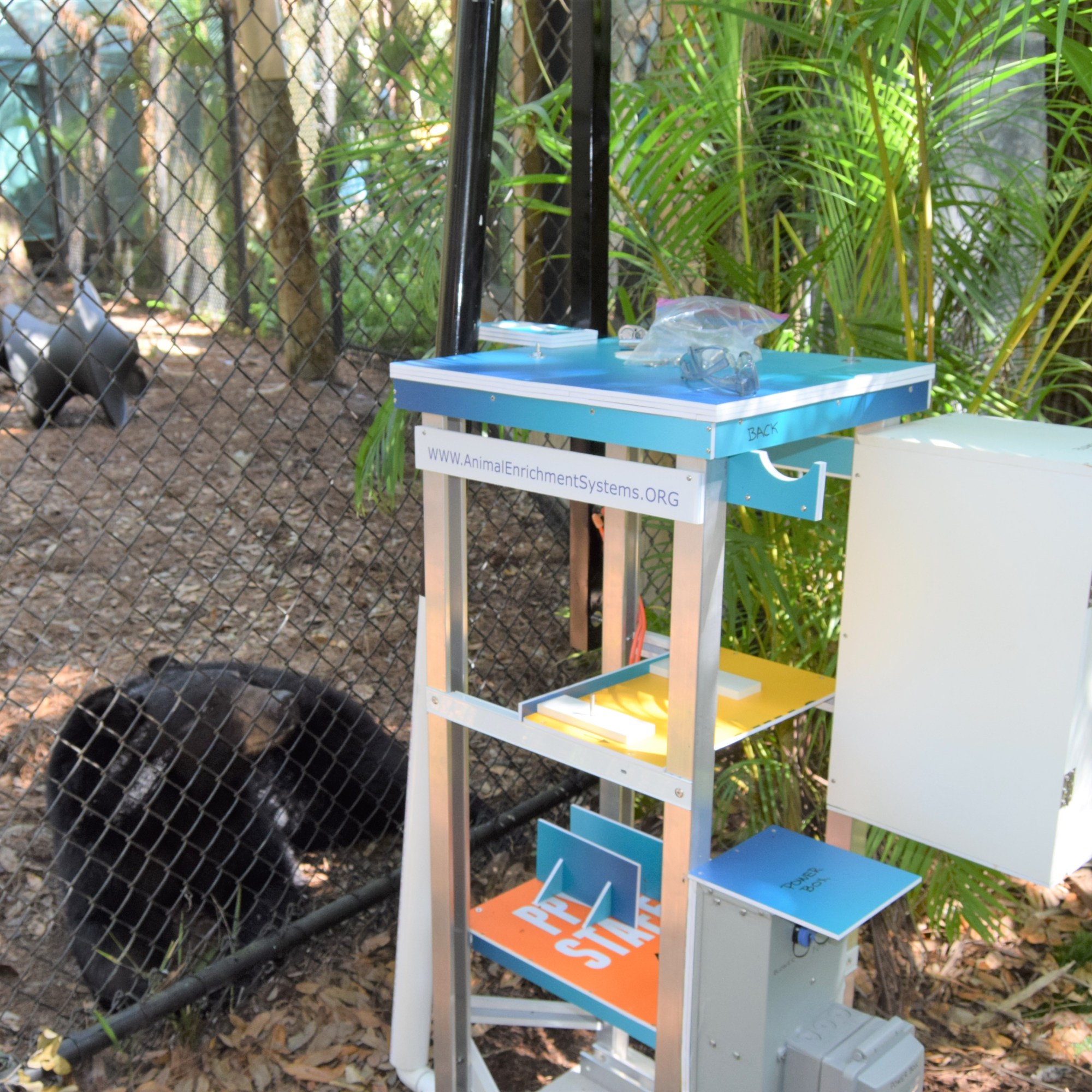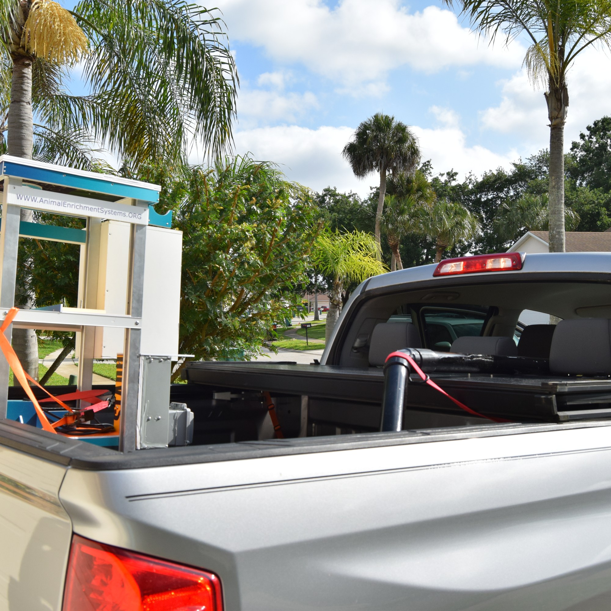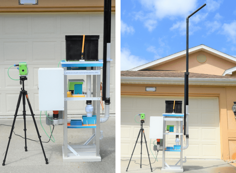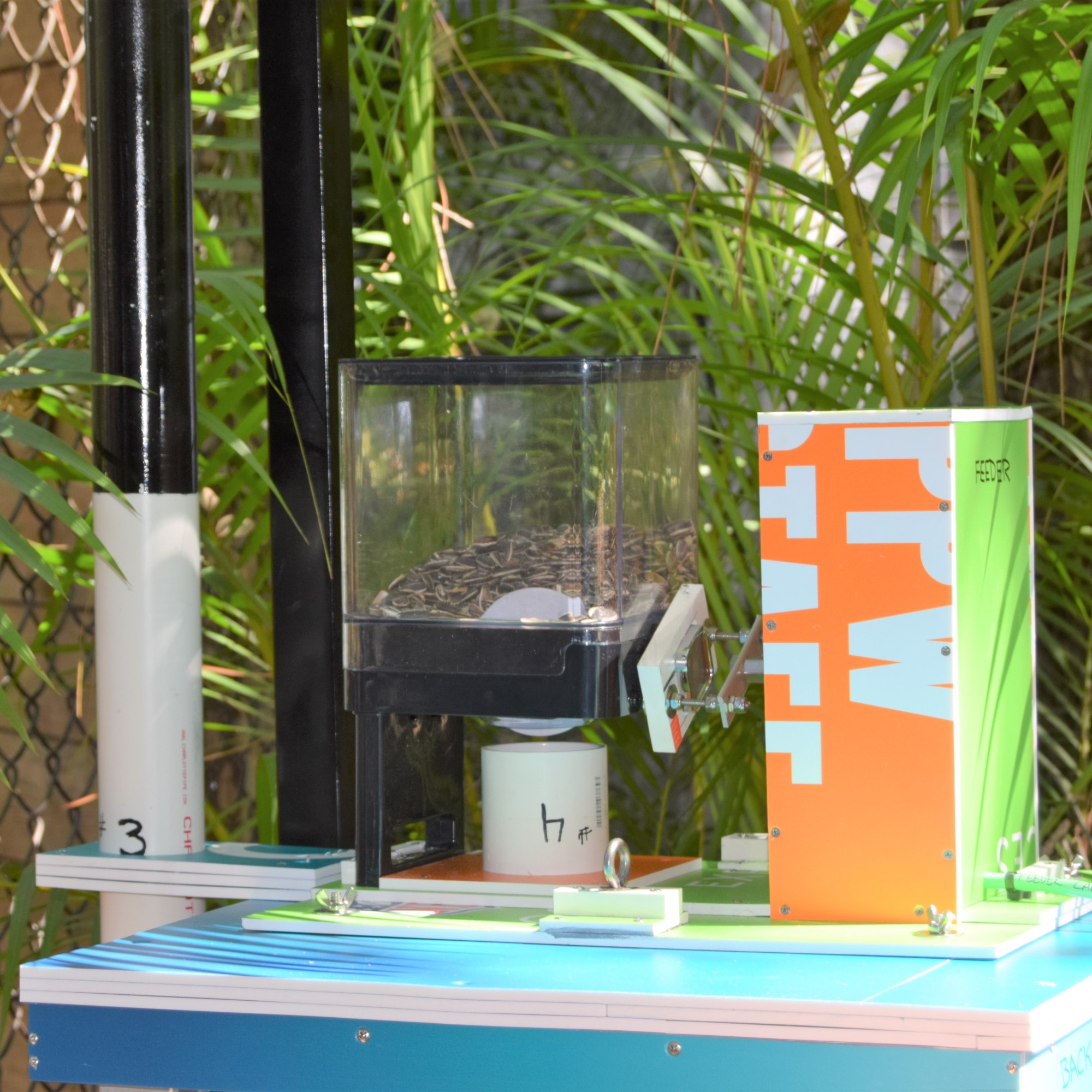 This is a photo of the main control card that will become the brains of the EED (environmental enrichment device). Once completed, this will control the shower, feeder, fan and music features. The aviary cart will now be called “Critter Cart”. This is being built for ZooTampa and can be wheeled throughout the zoo.