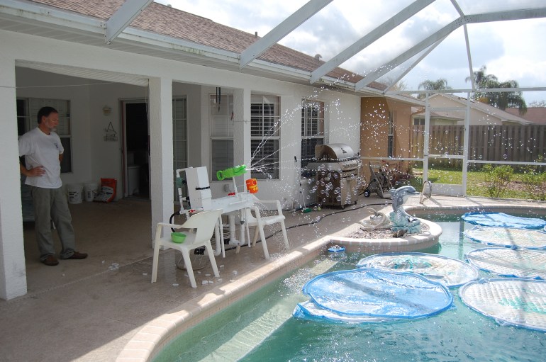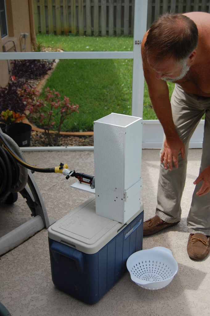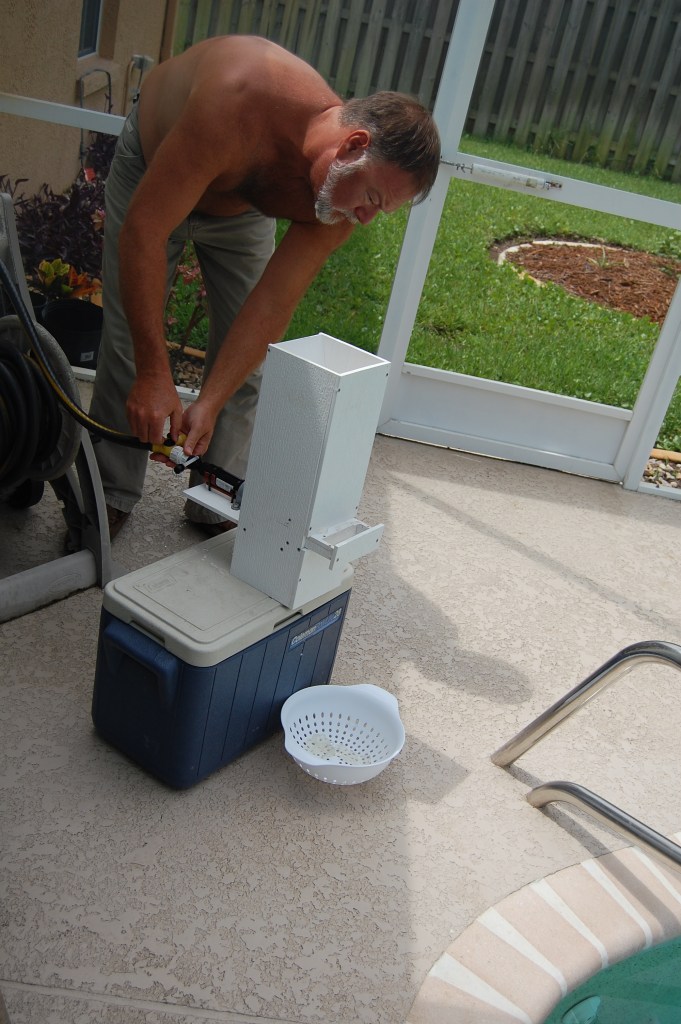It has three enrichment options: Soap Bubbles, Water Fountain (Delphi Gator), Ice or Gelatin Dispenser (tested in our driveway before we headed to Dolphin Research Center last week)