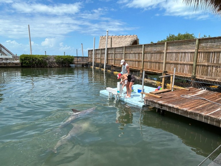 First test on dock! We were very happy to be able to let the dolphins explore their enrichment device. They were curious and pushed the paddles.