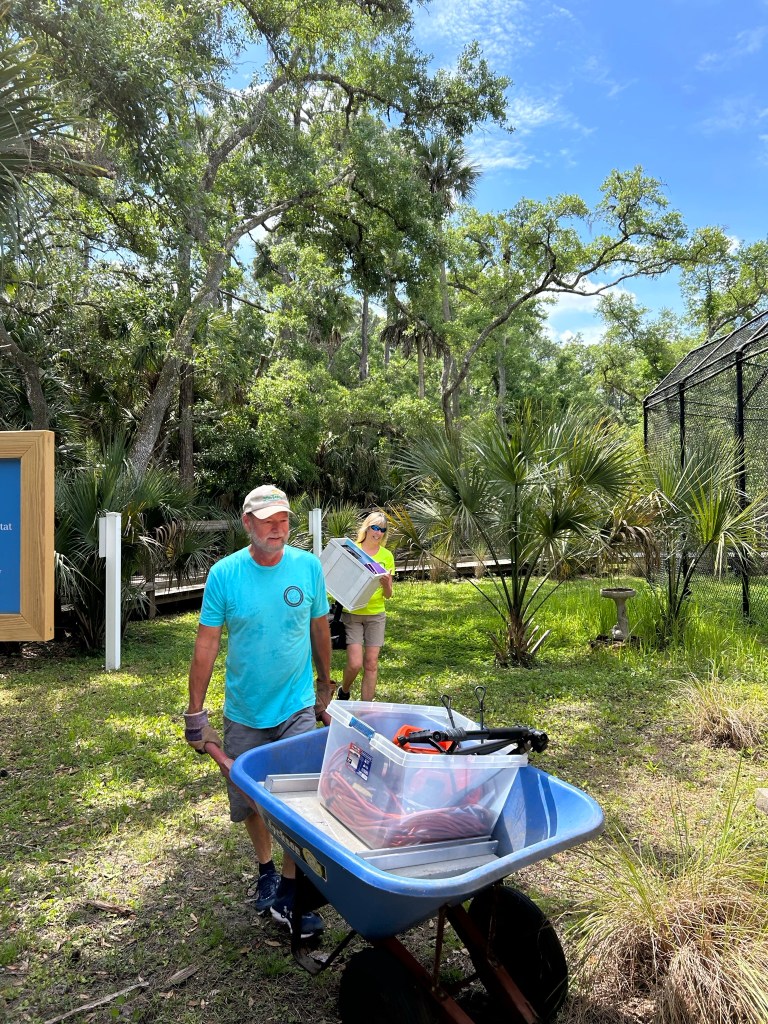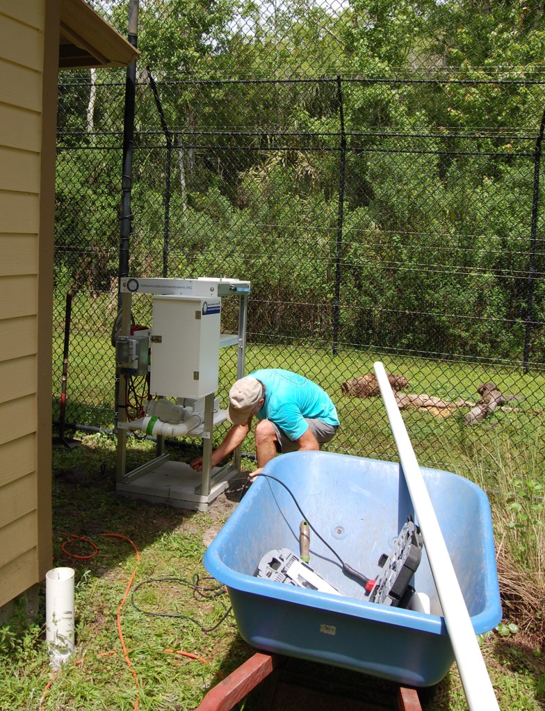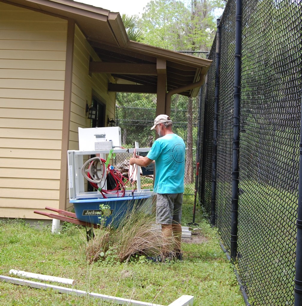 The entire system was disassembled for transportation to Central Florida Zoo. Between the system and all the tooling required for the installation, our full-size pickup truck was packed to the limit. Upon arrival at the zoo, the closest we could get the truck was a couple hundred yards from the installation location. All the tools and equipment was transported by wheelbarrow.