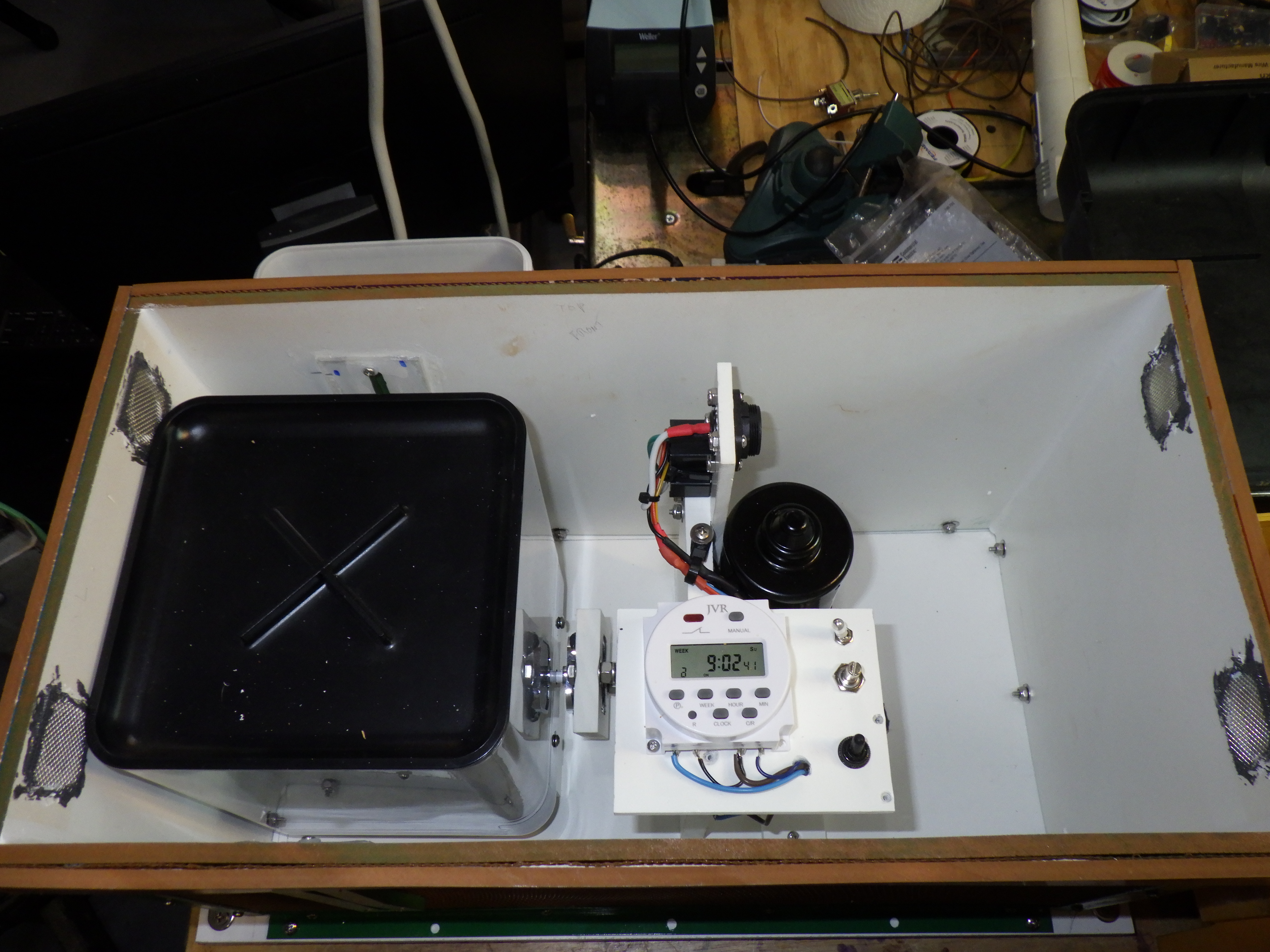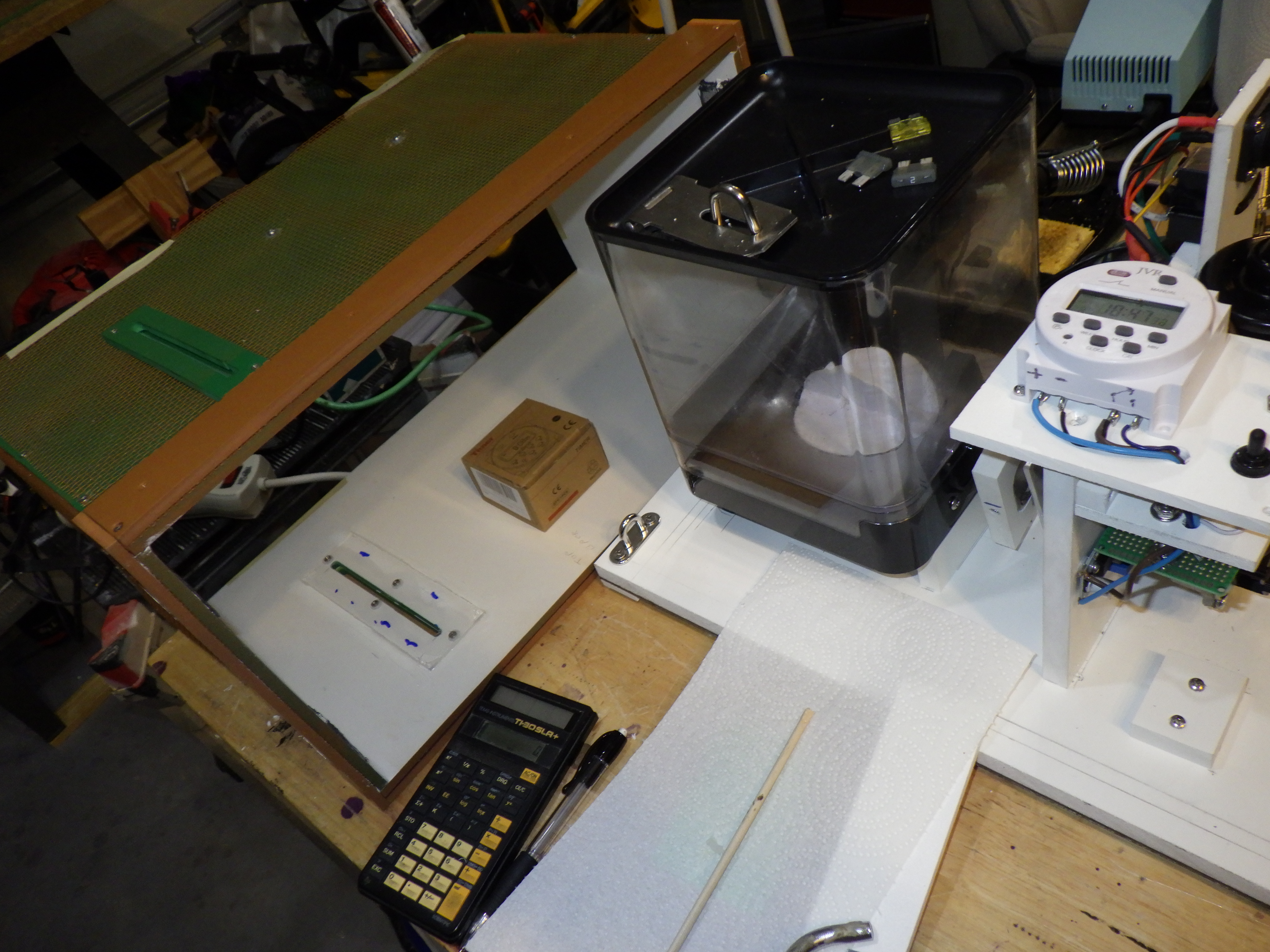 The PVC pipes were the next to be installed, then the electronics and feeder. The switch was thrown and the EED came to life. This was a great relief to see everything survived transportation to the site.